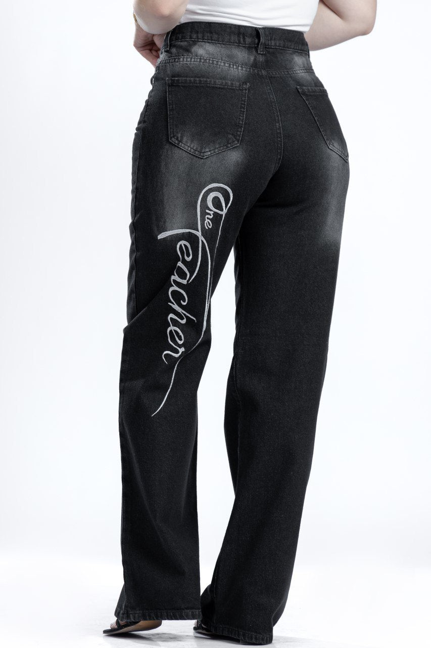 بنطلون واسع الساق مطرز – طويل